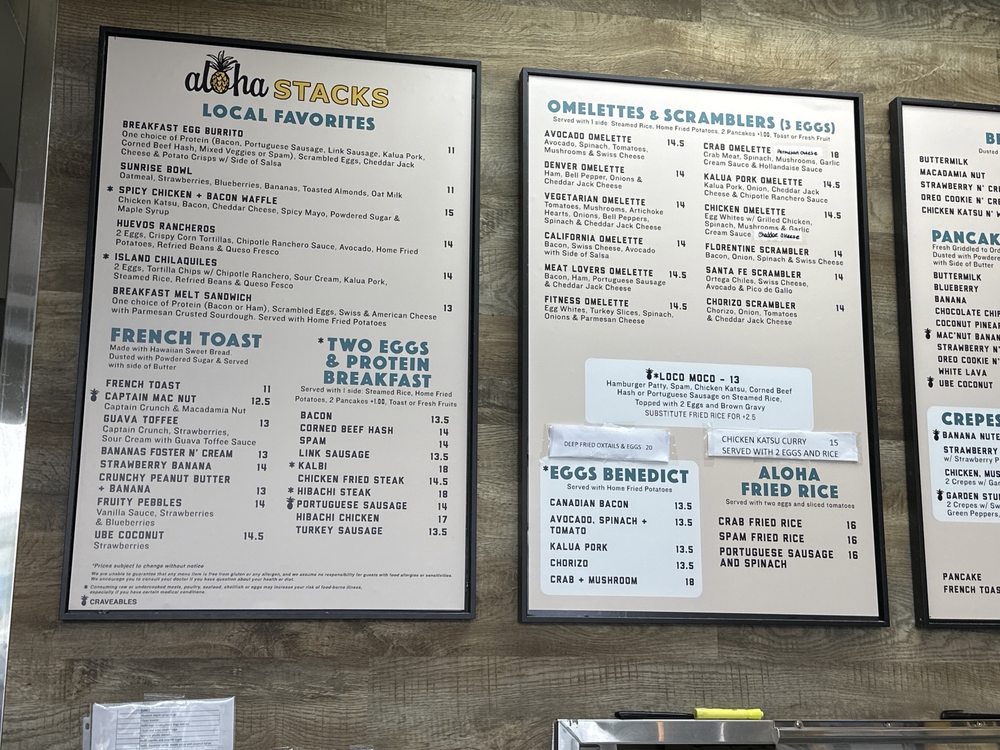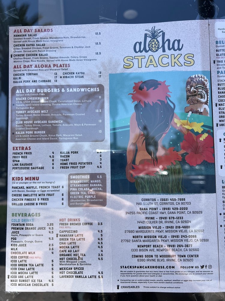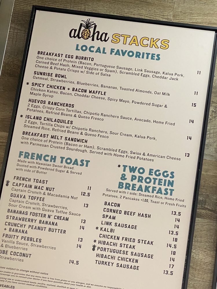 Aloha Stacks Island Style Eats offers a diverse menu of Hawaiian-inspired dishes, including a variety of pancakes, all-day Aloha plates, burgers, and sandwiches. Located in Cerritos, CA, this restaurant provides outdoor seating, accepts credit cards and Apple Pay, and offers catering services. Customers rave about dishes like the island chilaquiles, loco moco, and Macnut banana pancakes. The unique flavors and combinations of ingredients make for a delightful dining experience. The space features modern decor with both indoor and outdoor seating options. With quick and efficient service, Aloha Stacks is a must-visit for anyone craving a taste of the islands in Southern California.